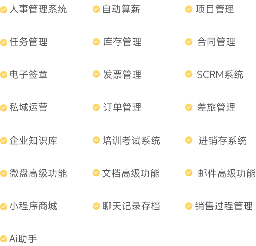 企业微信专属服务 | OA办公平台搭建 提升协同效率 | 客户管理平台搭建 助力业务增长 | 培训学习平台搭建 助力打造企业知识库 | 实现办公效率与客户管理双突破 | 助力企业真正实现数字化增长 | 注册企业微信